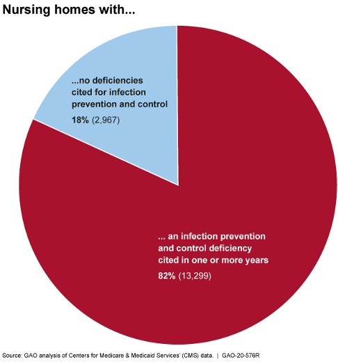 “Prior to the COVID-19 pandemic, (GAO) found that most nursing homes were cited for infection prevention and control deficiencies (82% of those surveyed from 2013-2017). About half of these homes had persistent problems and were cited across multiple years.”