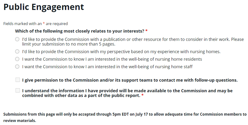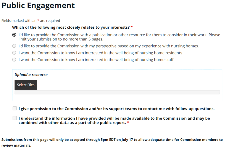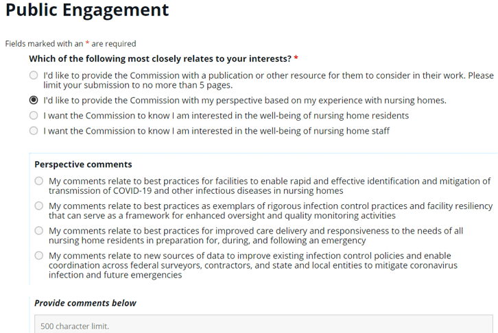 This Commission is seeking public comments on best practices from the LTC industry, but you have a limited window to submit your comments – 5pm (ET) on Friday, July 17, 2020.