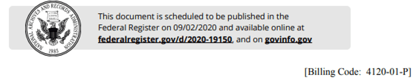 CMS-3401-IFC (Medicare and Medicaid Programs, Clinical Laboratory Improvement Amendments (CLIA), and Patient Protection and Affordable Care Act; Additional Policy and Regulatory Revisions in response to the COVID-19 Public Health emergency – Interim Final Rule with Comment Period) is scheduled for publication in the Federal Register on Wednesday, September 2, 2020: