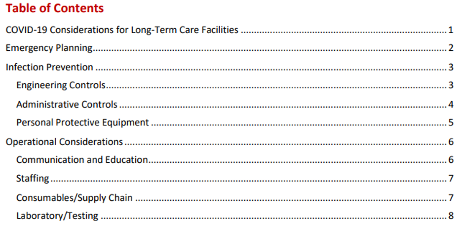 “Long-term care (LTC) facilities (including nursing homes, skilled nursing facilities, and assisted living facilities) are a healthcare setting of particular concern during the COVID-19 pandemic. LTC facility residents tend to have characteristics that put them at increased risk of severe illness or death due to COVID-19, including older age and presence of comorbid conditions. According to the Centers for Medicare & Medicaid Services, there have been 198,153 confirmed COVID-19 cases, 119,701 suspected COVID-19 cases, and 49,871 COVID-19 deaths in residents as of August 16, 2020. Increased risk of exposure is also a concern for LTC facility staff, who have close physical contact with patients, often work extended shifts due to a workforce shortage, and may not be familiar with robust infection prevention programs. In addition to their own increased risk of exposure, LTC facility staff present an increased transmission risk. The relatively high proportion of staff working in more than one facility and the ability of the virus to be transmitted by asymptomatic and pre-symptomatic persons are two factors that facilitate the introduction and transmission of the virus within and among LTC facilities.” Here’s what you’ll find within this 16-page toolkit: