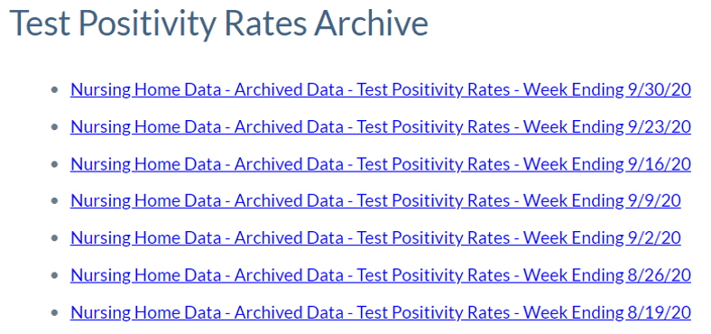 County positivity rates are posted for October 5, 2020. You can access past positivity rates in the Archives. Currently, the Archives shows these reports: