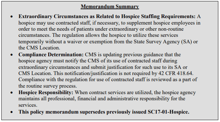 On October 5, 2020, CMS issued this QSO-21-01-Hospice memorandum. It is 2 pages in length.