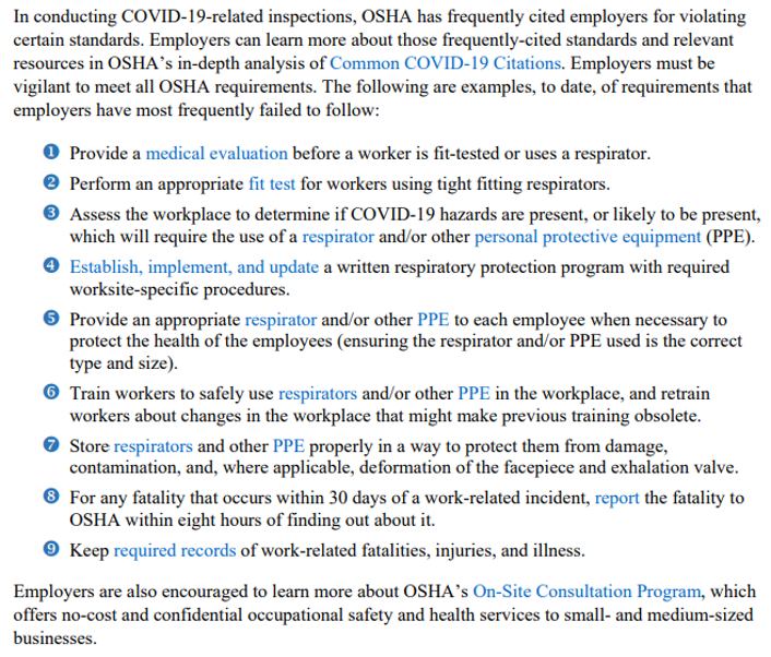- Lessons Learned: Frequently Cited Standards Related to COVID-19 Inspections is an interesting read posted late last week.