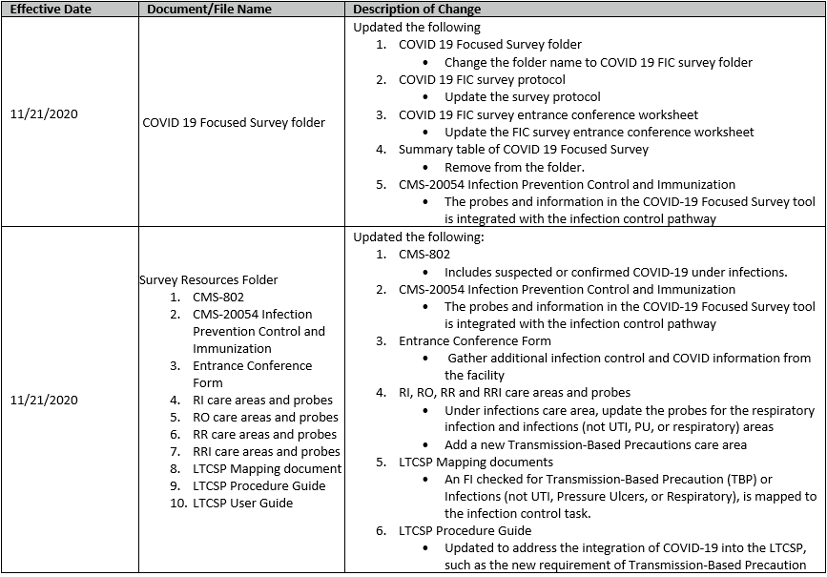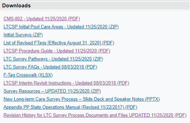 CMS posted updates to several survey process documents/folders on November 25, 2020: