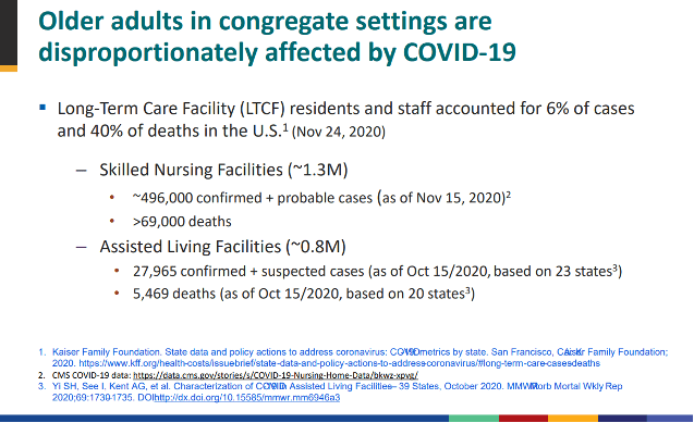 ¶ Long-term care facility residents are defined as adults who reside in facilities that provide a variety of services, including medical and personal care, to persons who are unable to live independently
