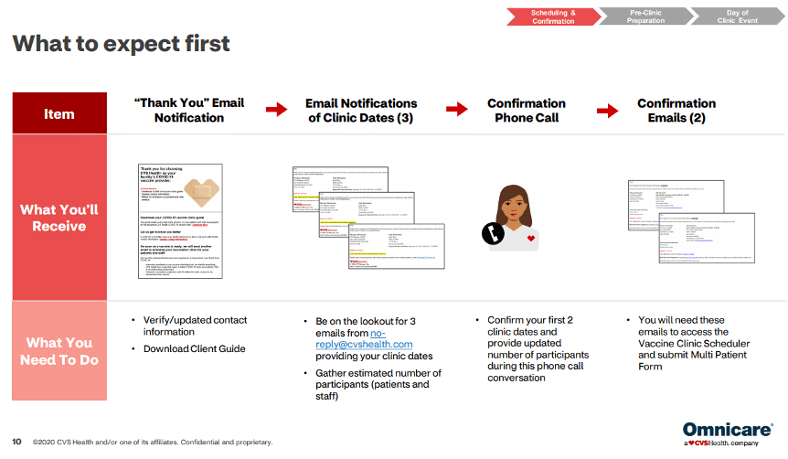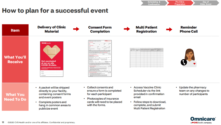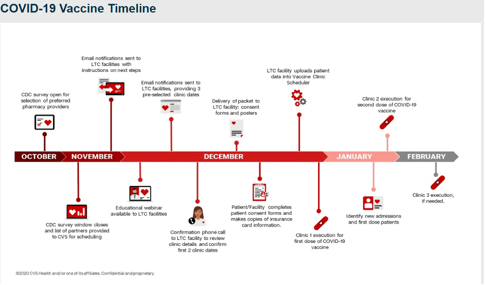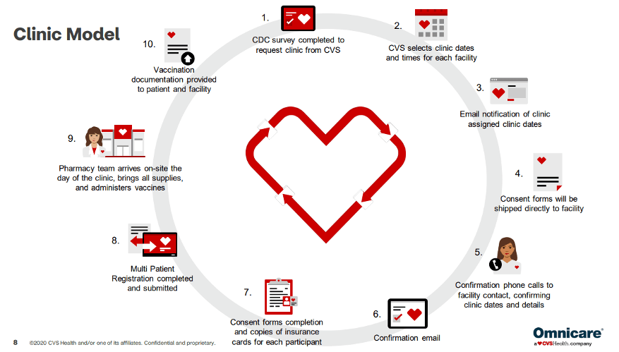 Lastly, CVSHealth/Omnicare has provided a COVID-19 Vaccine Resource webpage. “Since March, CVS Health has helped lead the fight against COVID-19. Now, we’re ready to leverage our network of retail pharmacies and our team of over 30,000 immunizers to administer vaccines. The purpose of these resources are to guide you through the COVID-19 vaccination clinic journey and what to expect.”