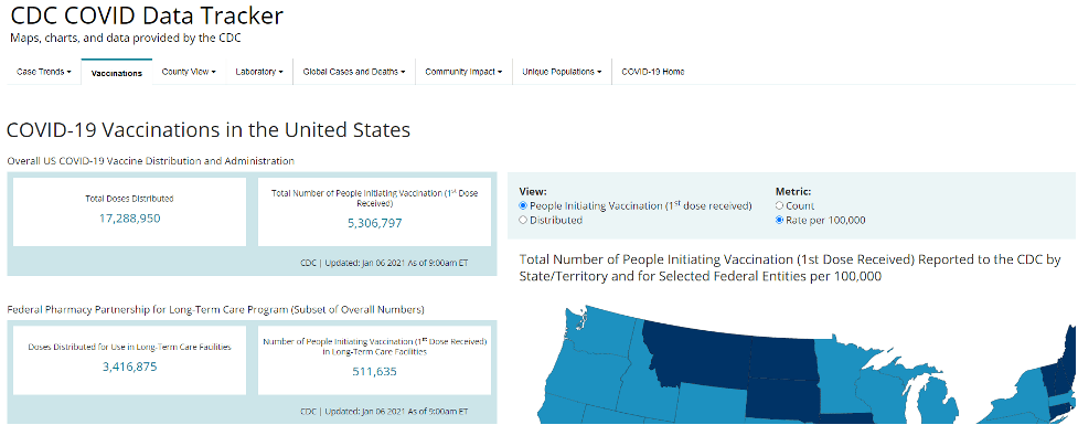 The CDC’s COVID-19 Data Tracker now contains current information about COVID-19 vaccinations in the U.S. This will be a great resource for all clinicians as well as others tracking the progress of vaccinations!