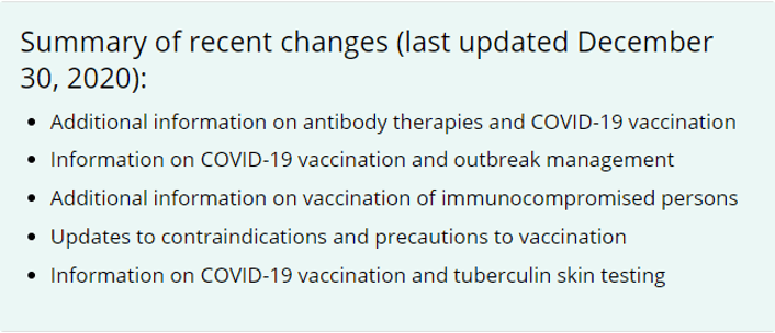 CDC updated Interim Clinical Considerations for Use of mRNA COVID-19 Vaccines Currently Authorized in the United Stateson December 30, 2020. Updates include: