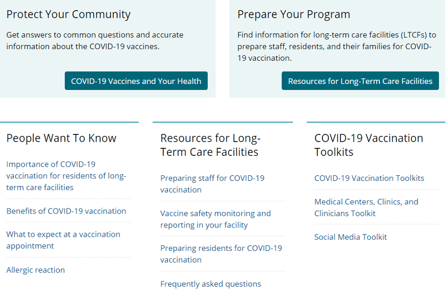 On January 19, 2021, CDC updated the Long-Term Care Facilities COVID-19 Vaccination webpage.