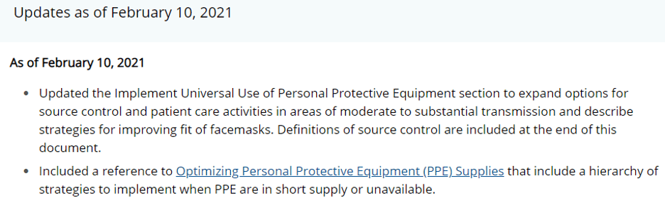 Also updated on February 19, 2021 is Interim Infection Prevention and Control Recommendations for Healthcare Personnel During the Coronavirus Disease 2019 (COVID-19) Pandemic.