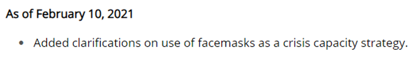 Strategies for Optimizing the Supply of N95 Respirators was updated February 10, 2021.