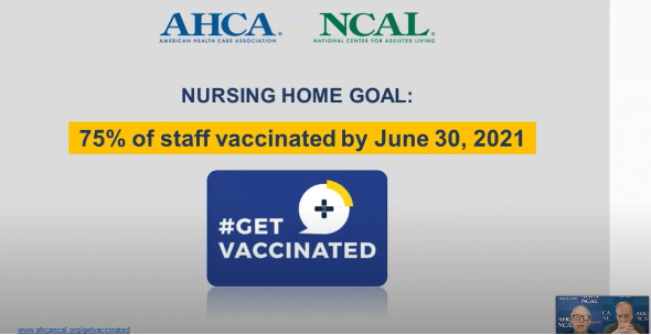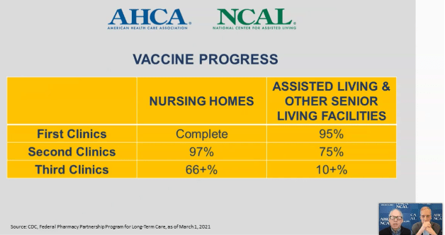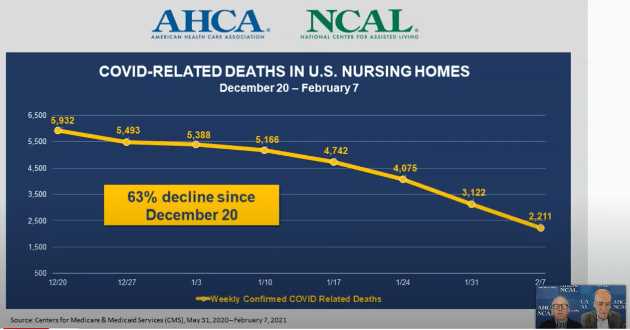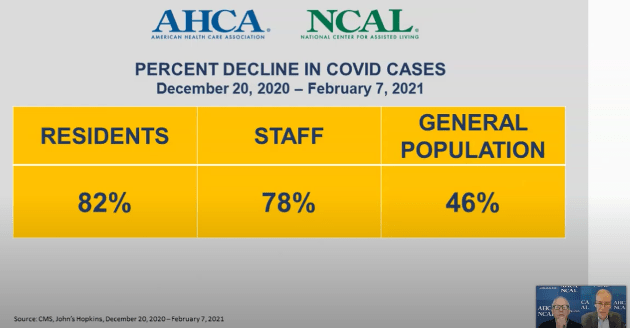 AHCA/NCAL marked the One Year Anniversary of COVID-19 in America’s Long-Term Care Facilities in this YouTube video (28 minutes, 45 seconds) on March 2, 2021 – it’s well worth your time to watch. Share it with your team. Note these slides in the early minutes of the video: