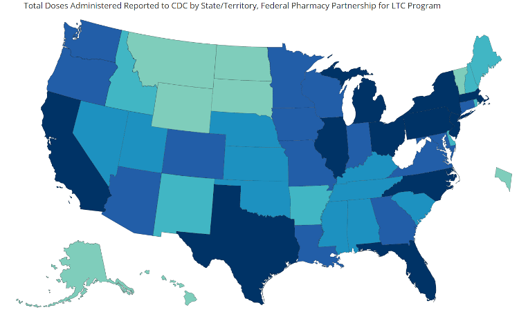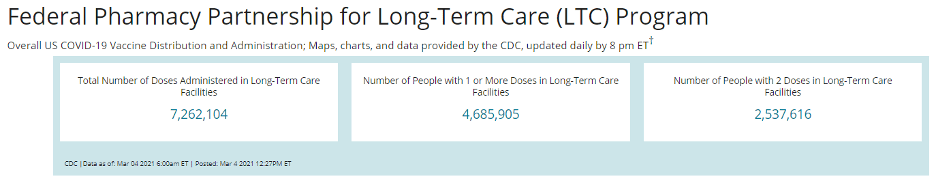 CDC reports the following vaccination rates for the country overall as well as for LTCFs as of March 4, 2021 at 5am: