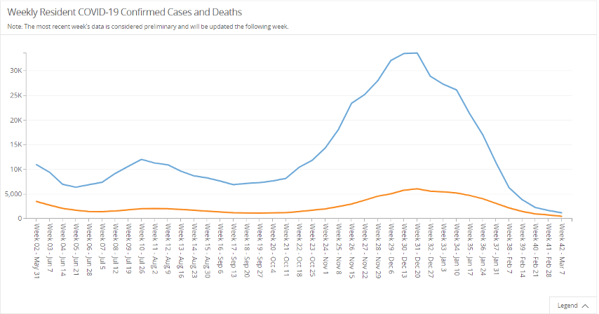 CMS has posted updated COVID-19 data for nursing homes for week ending March 7, 2021.
