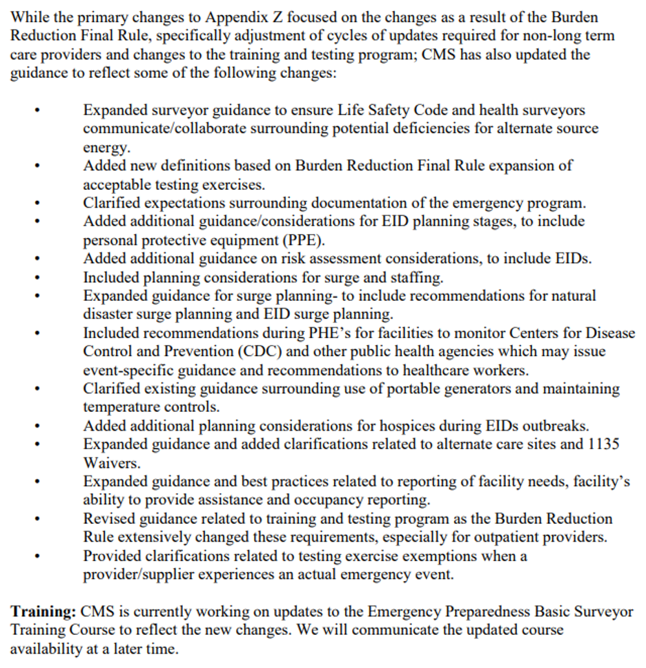 One thought on “Updated Guidance for Emergency Preparedness-Appendix Z of the State Operations Manual (SOM)”
