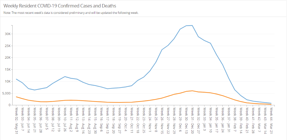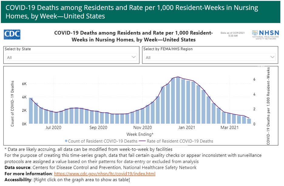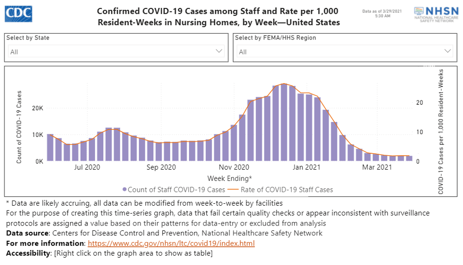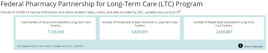 CMS has posted COVID-19 nursing home data for week ending March 21, 2021.