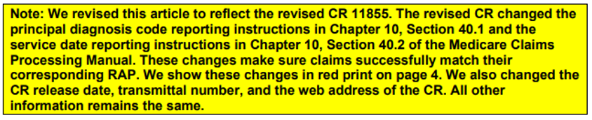Here is the changed information found on page 4 of this MLN Matters: