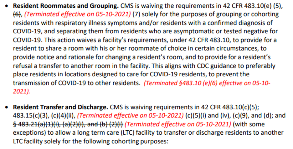 Note that the MDS waiver termination is new as of May 10, 2021 (you’ll find that in QSO-21-17-NH … 1st hyperlink in the initial sentence of this blog) while the PBJ submission waiver was termination last June.