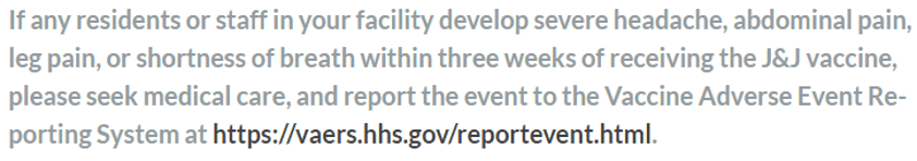 If you didn’t see this blog posted April 16, 2021, please take a few minutes now to read it. Included in this CDC and CMS update, you’ll find this statement: