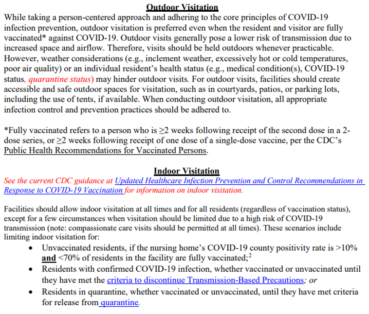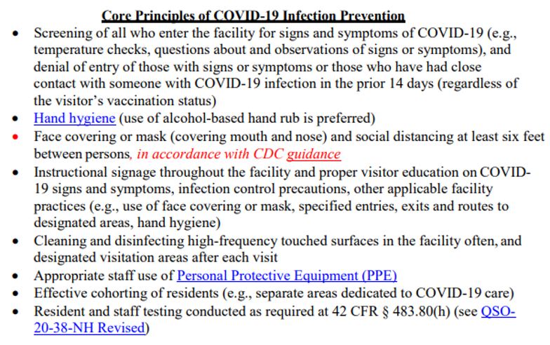 CMS posted a revised QSO-20-39-NH the afternoon of April 27, 2021. The title of this 8-page QSO is Nursing Home Visitation – COVID-19.