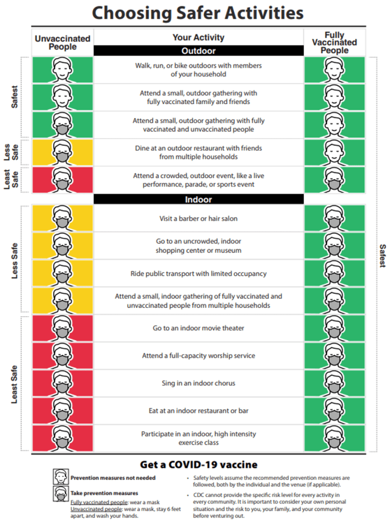 You’ll see the following graphic on the recommendations for fully vaccinated people web page. I suggest that this graphic would be a great one to post in your facility’s breakroom, hand out with staff paychecks, share on your facility’s website and/or newsletters for families, etc. A picture’s worth a thousand words.
