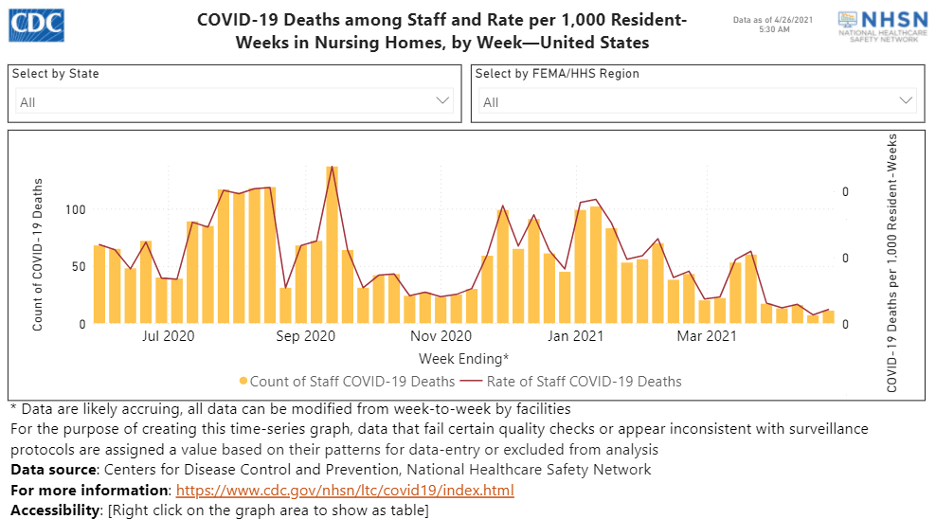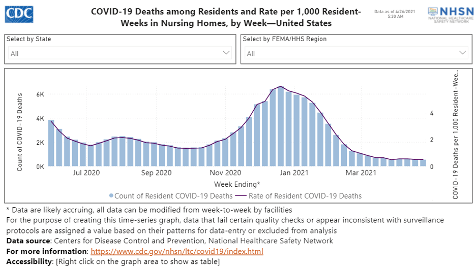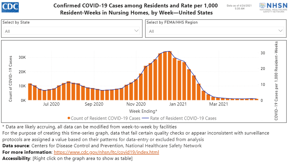 CDC’s COVID-19 Data Tracker shows this LTCF data as of early morning April 30, 2021: