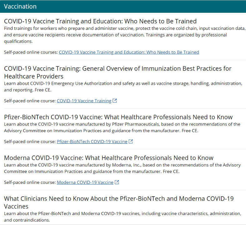 The CDC updated its Training for Healthcare Professionals COVID-19 webpage on May 26, 2021.