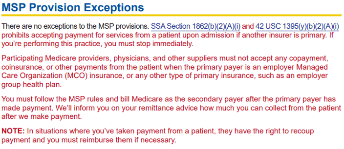 Medicare Secondary Payer Medicare Learning Network booklet: Clarified policy on accepting payment for services if another insurer is primary.