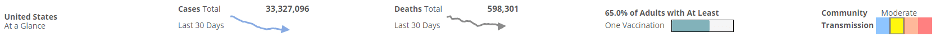 - The stats bar at the top of the site now includes level of community transmission and enhanced visualizations