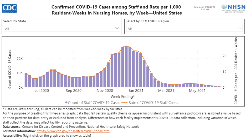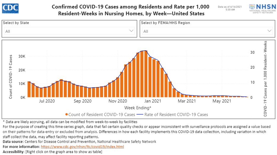 CMS has posted COVID-19 nursing home data for week ending June 6, 2021.