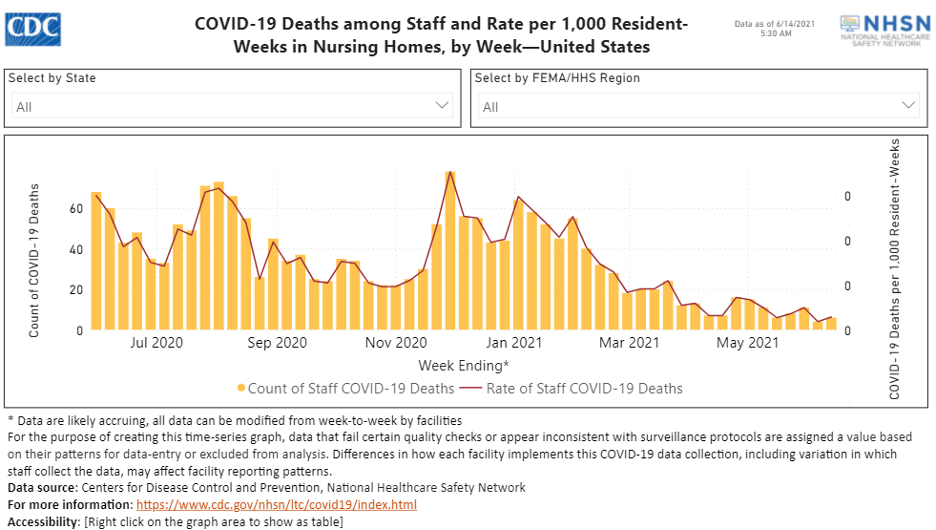 NHSN Nursing Home Covid-19 Data Dashboard shows this information as of early morning June 14, 2021: