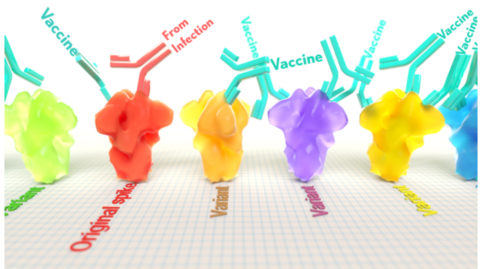 Now, a new NIH-supported study shows that the answer to this question will vary based on how an individual’s antibodies against SARS-CoV-2 were generated: over the course of a naturally acquired infection or from a COVID-19 vaccine. The new evidence shows that protective antibodies generated in response to an mRNA vaccine will target a broader range of SARS-CoV-2 variants carrying “single letter” changes in a key portion of their spike protein compared to antibodies acquired from an infection.