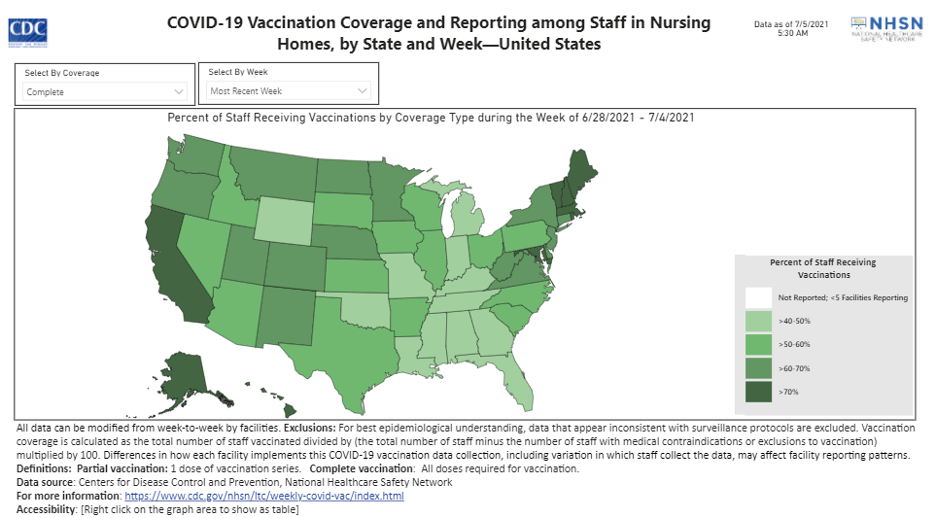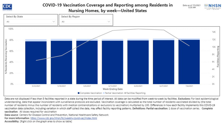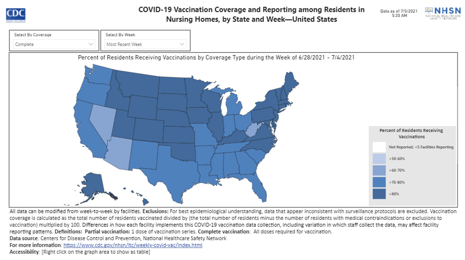 CMS has updated nursing home COVID-19 data as of the week ending June 27, 2021.