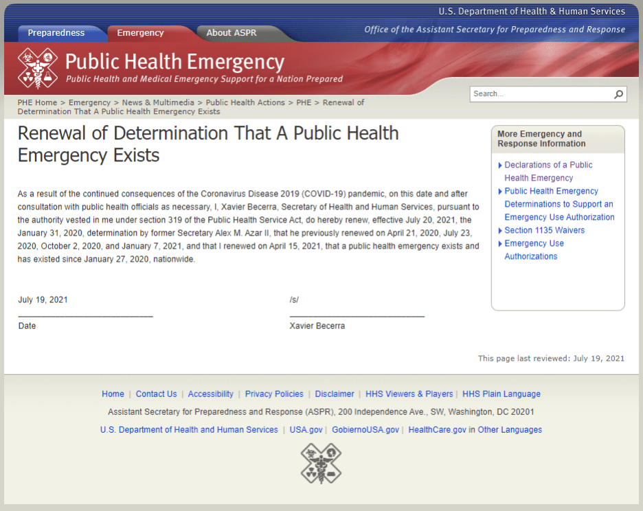 Renewal of Determination That a Public Health Emergency Exists July 19, 2021 Posted in COVID-19, Senior Living Mary Madison, RN, RAC-CT, CDPClinical Consultant – Briggs Healthcare The PHE has been extended for another 90 days. Share this: Click to share on X (Opens in new window) X Click to share on Facebook (Opens in new window) Facebook Click to share on LinkedIn (Opens in new window) LinkedIn Click to email a link to a friend (Opens in new window) Email Like Loading...