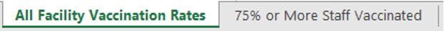 This link takes you to the list of every nursing home’s resident and staff vaccination rates as of the week ending July 18, 2021. When the spreadsheet opens, you’ll see 2 tabs: