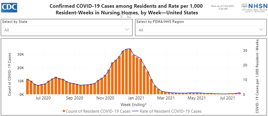 CMS has posted nursing home COVID-19 data for week ending July 18, 2021.