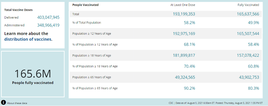CDC’s COVID-19 data as of August 5, 2021 shows: