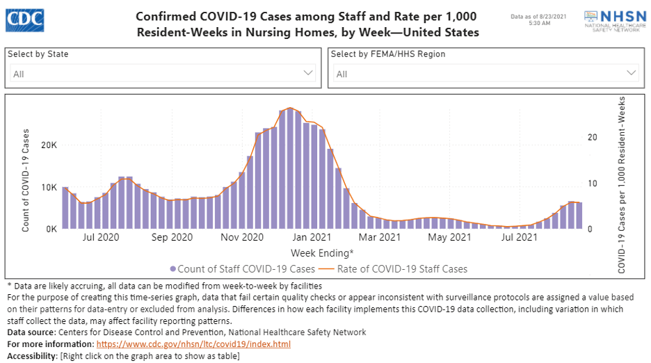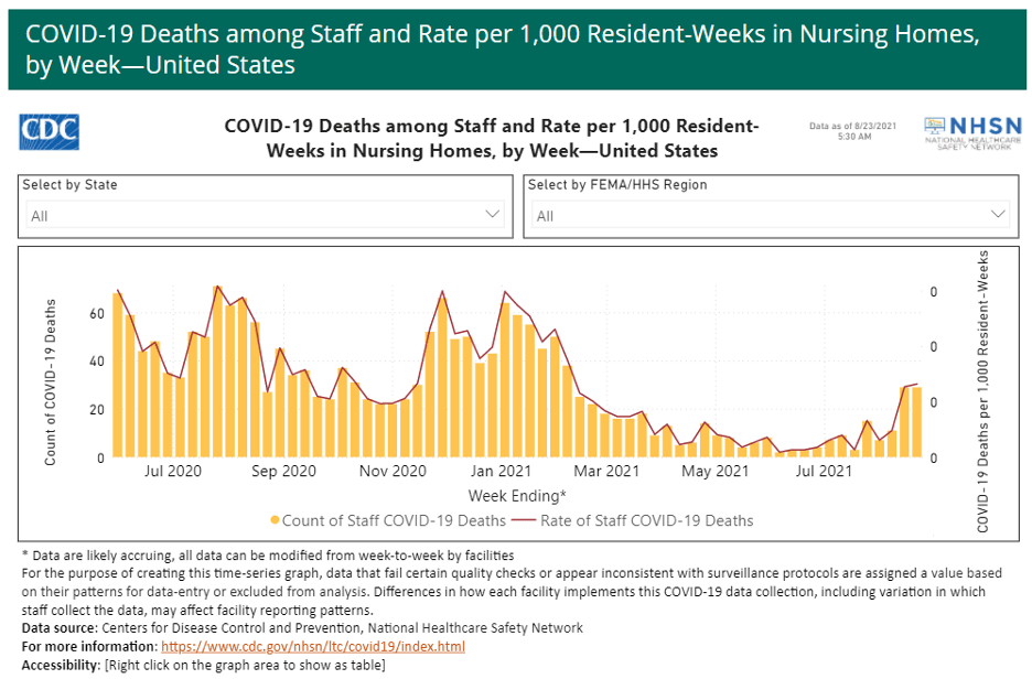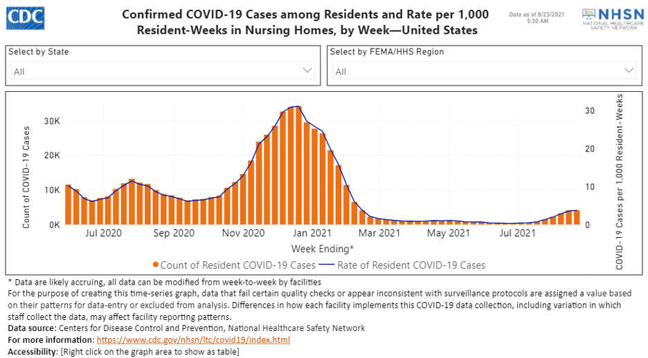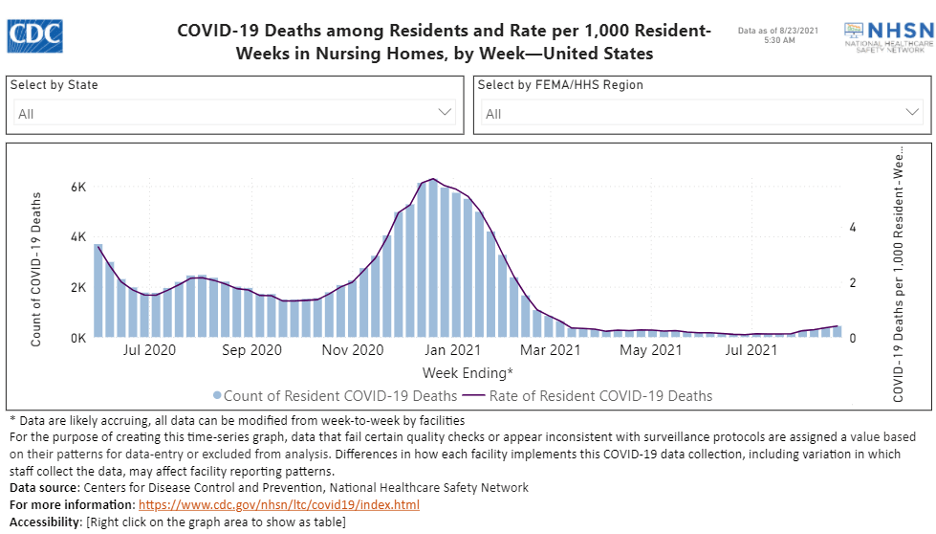 NHSN’s Nursing Home COVID-19 Data Dashboard shows this data (as of August 23, 2021):