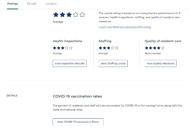 Remember that you can also select multiple nursing homes in an area and compare their data side-by-side. This goes for COVID-19 vaccination as well as other factors provided on Care Compare.