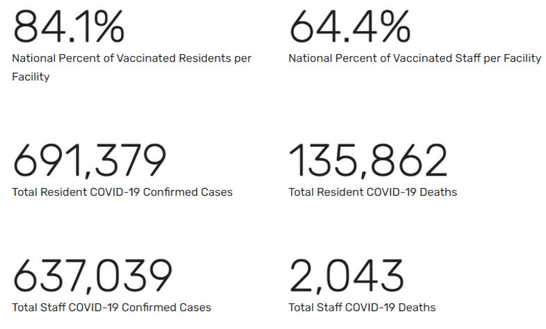 CMS has posted nursing home COVID-19 data for week ending September 12, 2021.