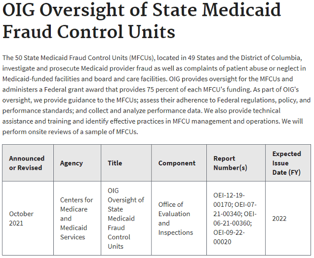 The Office of Inspector General has just added some items to its Work Plan that bear watching for in 2022: