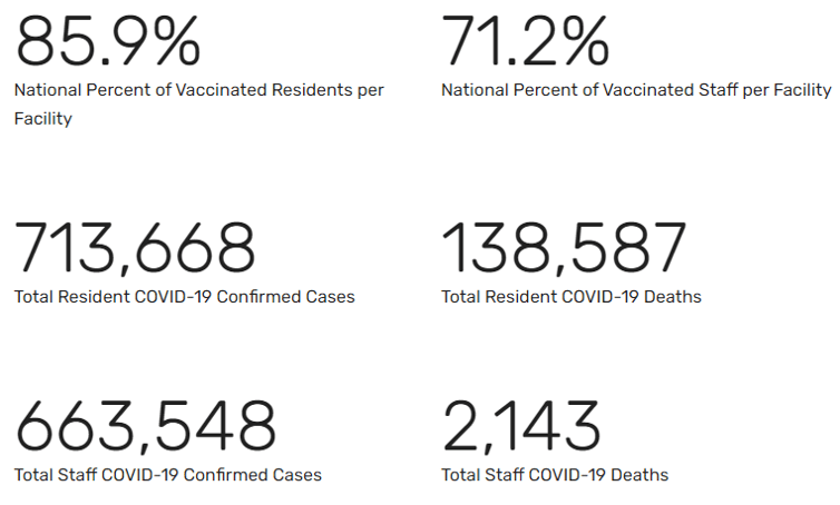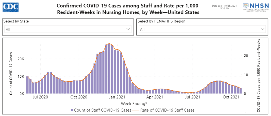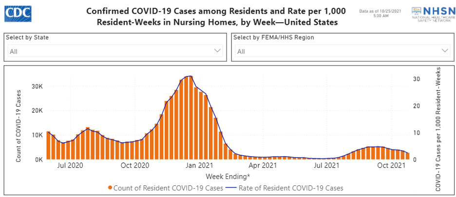 CMS has posted the latest nursing home COVID-19 data for the week ending October 17, 2021: