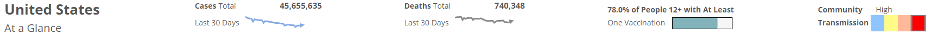 Resident and Staff Vaccinations for the week ending October 17, 2021 are also available. All U.S. facilities are identified plus there is a separate sheet (tab at bottom of spreadsheet) that shows the facilities that have 75% or more of their staff vaccinated. Both are worth a look – check out the status of your facility.