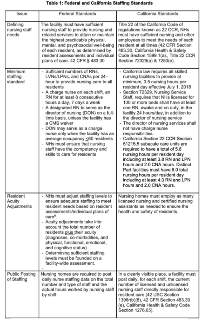 “Ensure that nursing homes adjust staffing levels to meet the acuity needs of residents.