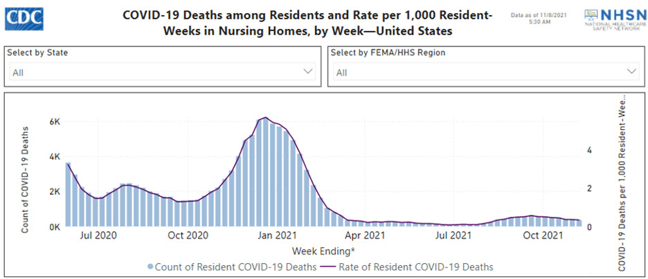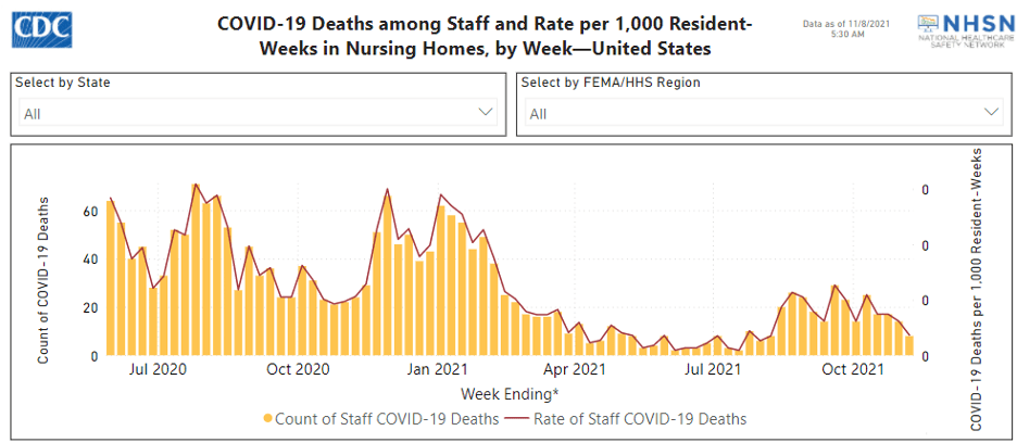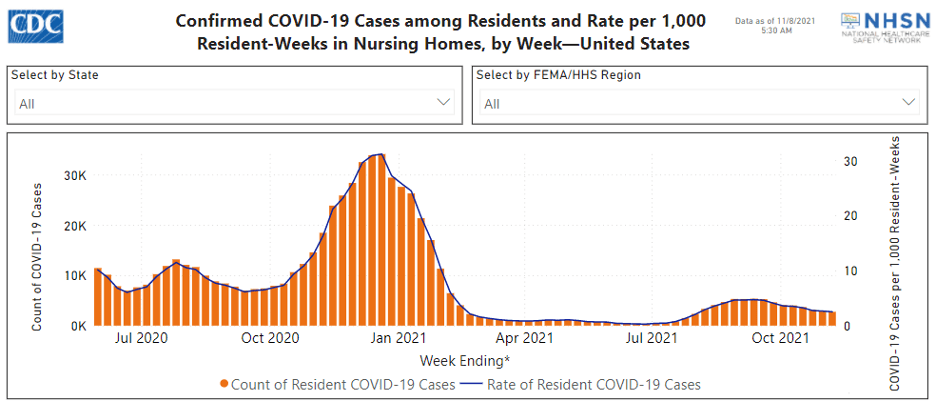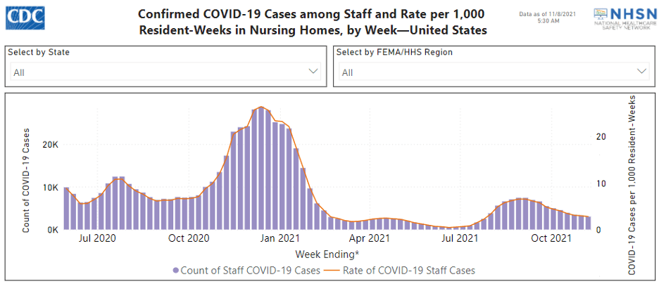 The NHSN COVID-19 Dashboard shows this data as of 5:30am ET on November 8, 2021: