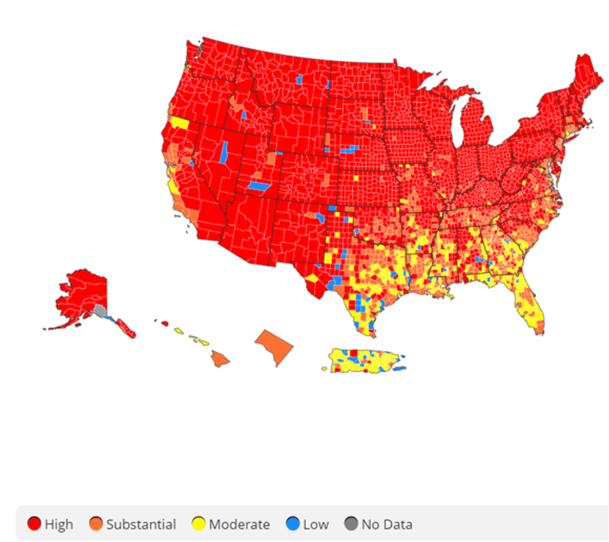 CDC’s COVID Data Tracker shows community transmission at these levels: