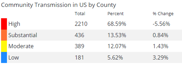 CDC’s COVID Data Tracker shows community transmission at these levels: