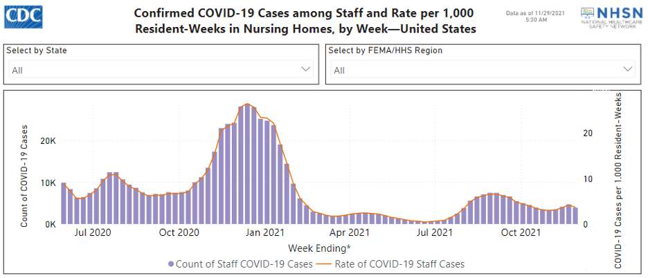 CMS has posted COVID-19 nursing home data for the week ending November 21, 2021.