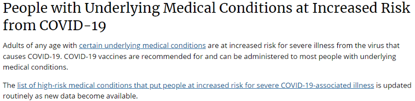 COVID-19 Vaccines for People with Underlying Medical Conditions was updated December 14, 2021.