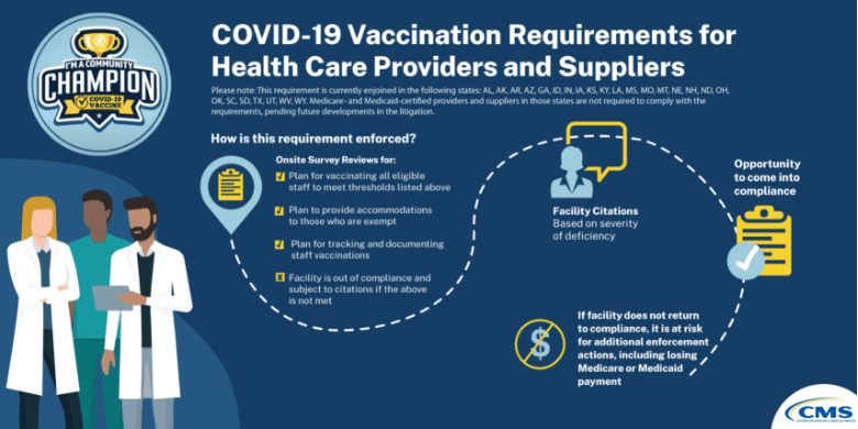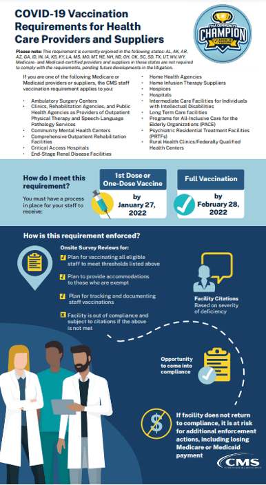 CMS posted a number of documents and infographics on Tuesday, December 28, 2021, related to staff vaccinations and the Interim Final Rule.